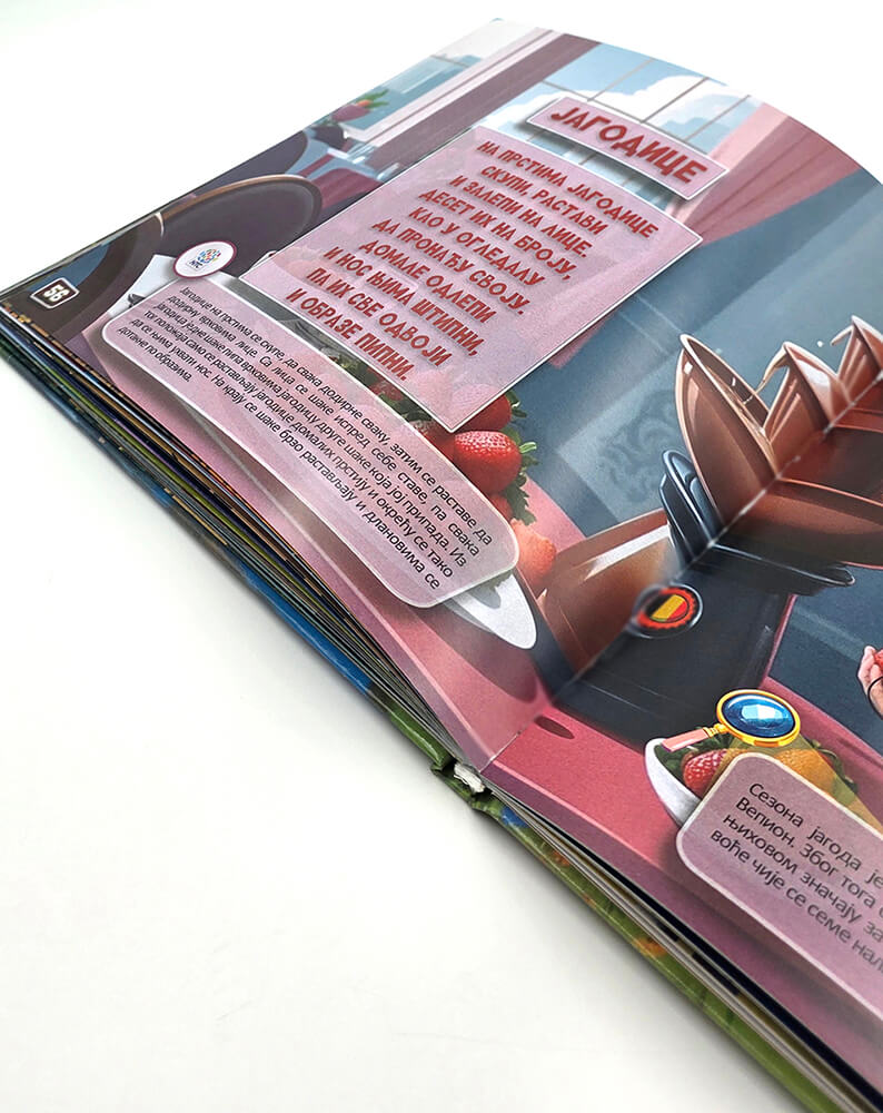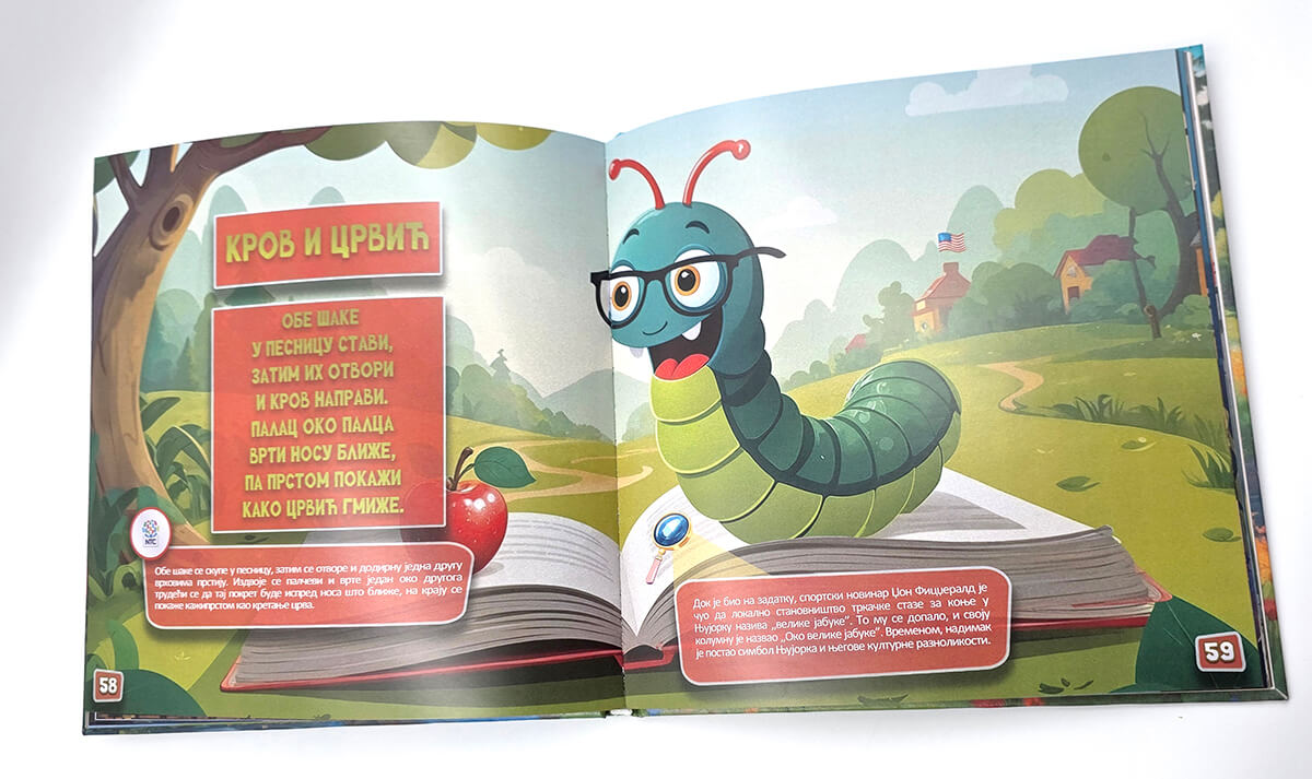 Pesmarica sadrži 34 pesmice, a ispod svake su jasno opisane aktivnosti koje dete izvodi prateći stihove. Svaka pesmica je praćena ilustracijom povezanim sa sadržajem ili državom koju predstavlja, uz istaknutu zastavu, što dodatno podstiče razmišljanje, povezivanje i radoznalost. Na kraju pesmarice nalaze se NTC pitanja i zanimljivosti koje dete vode ka daljem istraživanju i učenju kroz igru.